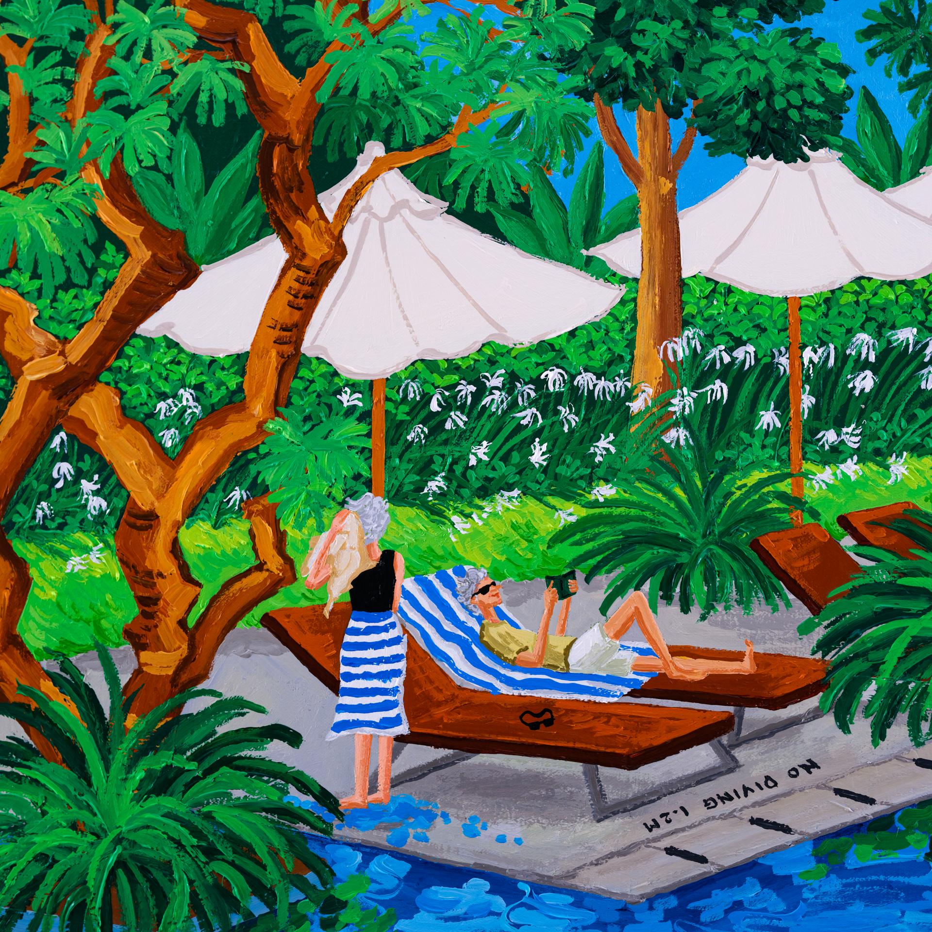 A man reading by the pool / 풀장에서 책을 읽는 남자